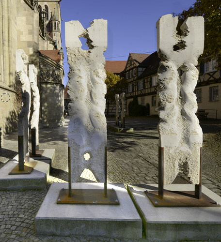 Wichtig sind die Skulpturen, die auf dem Platz vor der Kirche stehen.