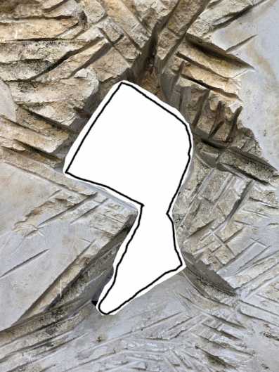 Die seltsame Grafik bedeckt bei einer Stehle die Öffnung, die sich im oberen Bereich befindet.